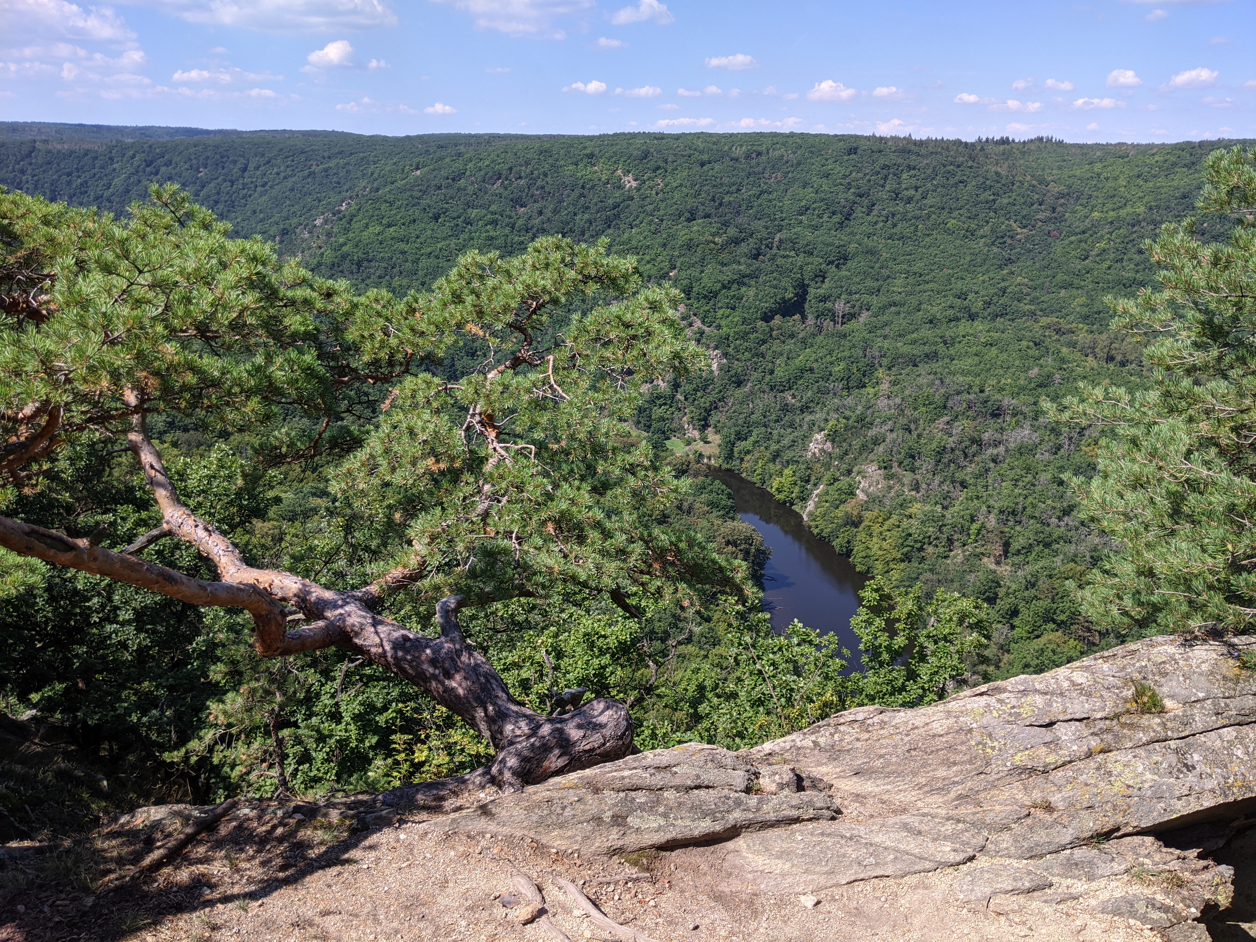 Prolézám vinicí a celý zpocený, znící jako hučící parní lokomotiva, vstupuji do krásného, téměř výhradně dubového lesa. Stín střídá šílené slunko a naopak. Nicméně, vyhlídka stála za to: